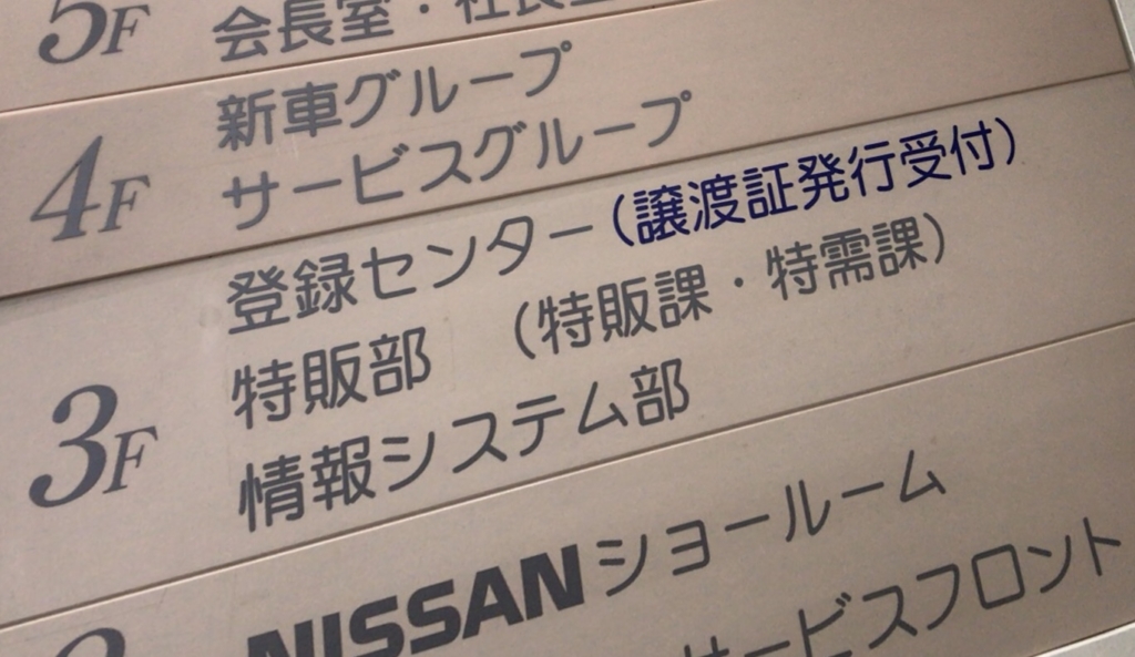 販売会社の場合は車検証の所有者の会社の住所に本社がありますので、「譲渡証発行受付」という部署が必ずありますので、そちらでの手続きになります。