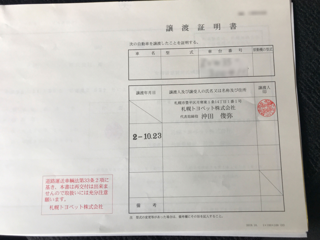 - 所有者の名義を変えるための譲渡証明書を出してもらうと言うこと。